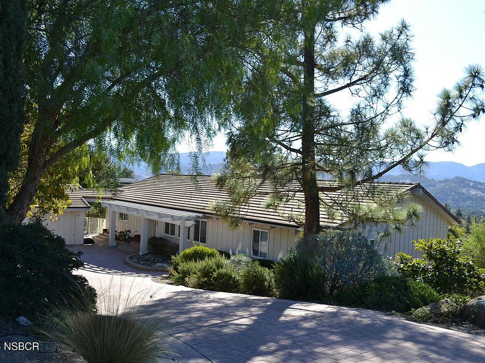 Amazing views amazing price and amazing potential at this very spacious home! This well-constructed home reflects the era of its original 1981 vintage vibe, ready for comfortable occupancy and enjoyment as-is, while also priced to provide a great opportunity for creative modernization...Buyers choice! Ideally located at the top of the hill on a culdesac street within Alisal Heights, a well respected development close to the iconic town of Solvang and enjoying the sweeping, picturesque views of the surrounding valley. The substantial lot is .84 of an acre set with a low maintenance landscape front and back, and a sizable area below for small orchard, gardens or area for pets to roam. Open kitchen layout offers electric stovetop for clean energy cooking, double ovens, trash compacter, dishwasher and ample cabinetry...all with those awesome views at a glance across the tiled countertops! Walk-around fireplace w/gas starter separates living room & reading room enhanced with vaulted wood ceiling. Primary bedroom is on main level with good sized bathroom and plenty of closet space. Downstairs you'll find a mini-bar with sink and small refrigerator. Another fireplace downstairs to cozy-up this great living area! Separate room with abundant space, ideal as guest quarters, home office, hobby or game room! Additional bathroom, bedrooms and access to the backyard from downstairs. Must see this wonderful property to appreciate all of the options!