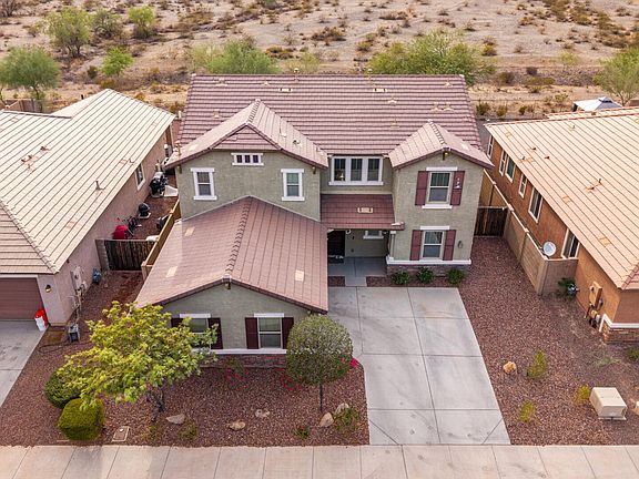 Experience all the charm of this gorgeous two-story home nestled in desirable Sienna Hills! The interior boasts a combination of hard flooring and carpet, baseboard molding & neutral paint, all set in a comfortable layout designed with modern everyday living in mind. The gourmet kitchen features mocha cabinets, decorative tile backsplash, granite counters, SS appliances & an extra large island for those casual conversations over quick bites. Get a restful sleep in the main bedroom, complete with a walk-in closet & a full ensuite with dual sinks. You'll have a bonus room, perfect for a workout area, office or media room. Out back, your oasis has a view fence with undeveloped desert as far as you can see, breathtaking White Tanks mountain backdrop/sunsets, extended covered patio, well-laid pavers, and a BBQ island build for entertaining. Don't miss your chance, this gem won't last!!
