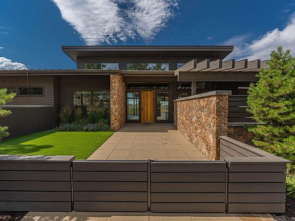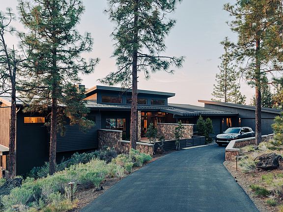 Your dream home awaits in the prestigious & gated North Rim neighborhood. A custom-built masterpiece, set on an acre backs to open space, offering privacy & access to scenic trails leading to the Deschutes River. Spanning over 6,000 Sq.Ft., this architectural gem has been thoughtfully reimagined to blend mid-century modern vibes w/ a distinct NW twist.Step inside to the expansive great room where reclaimed wood surrounds you from beneath your feet to the handcrafted built in shelves & fireplace, exuding warmth and timeless charm. As expected, the kitchen features state of the art appliances & stunning Carrara marble countertops.The primary suite, 2nd bedroom, & office round out the main level while multiple outdoor spaces provide the backdrop to take in the huge mtn views! The finished walk-out lower level offers 2 additional bedrooms, media room, bar, & bonus rooms for music, art, or play. A 4-car garage completes this luxurious package, providing ample space for vehicles & toys!