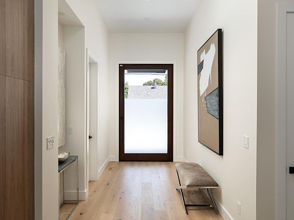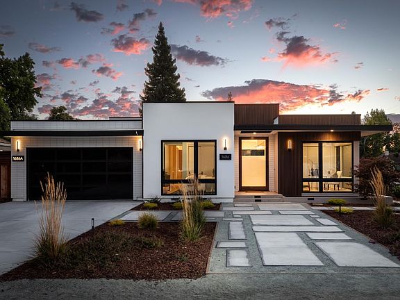 This ultra-modern home, built in 2024, offers sleek design with a wraparound linear reflecting pool, spacious open-concept floor plan on one level, and the added advantage of a fully independent ADU with its own address. The 4-bedroom, 4-bath main home begins with a pivoting glass door opening to an expansive great room with retractable glass wall to the rear yard, a gourmet kitchen with counter seating, and a separate wine bar. The primary suite features dual walk-in closets, a luxurious spa bath, and direct outdoor access. Entered through its own gate, the 2-bedroom, 2-bath ADU shares the rear yard with a retractable glass wall and includes a full kitchen and laundry hookups, creating flexible space for rental income or extended family living. Eco-friendly synthetic lawn, a 2-car garage, proximity to shops and restaurants, and access to renowned Cupertino schools complete this property.