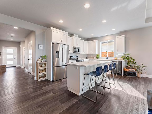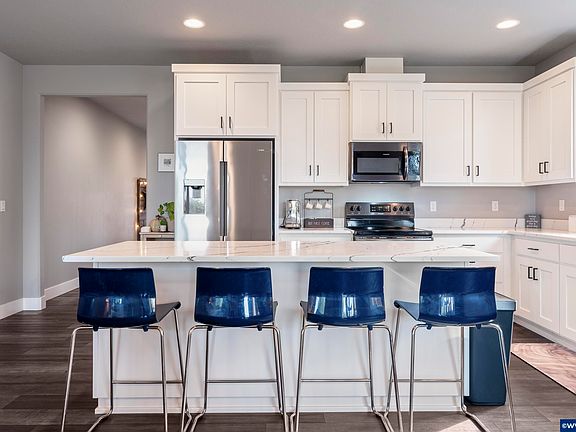 Stunning single-level 3 bed, 2 bath home with open floor plan, modern finishes including custom hardwood designed cabinets, quartz countertops, and stainless steel appliances. Primary suite features a tiled shower and designer finishes. Luxury vinyl plank floors, high-efficiency systems, and finished garage add comfort and convenience. Enjoy a covered patio, fenced backyard, landscaping with UGS front and back, and a 30-year architectural roof. Move-in ready! Built by Celtic Homes.