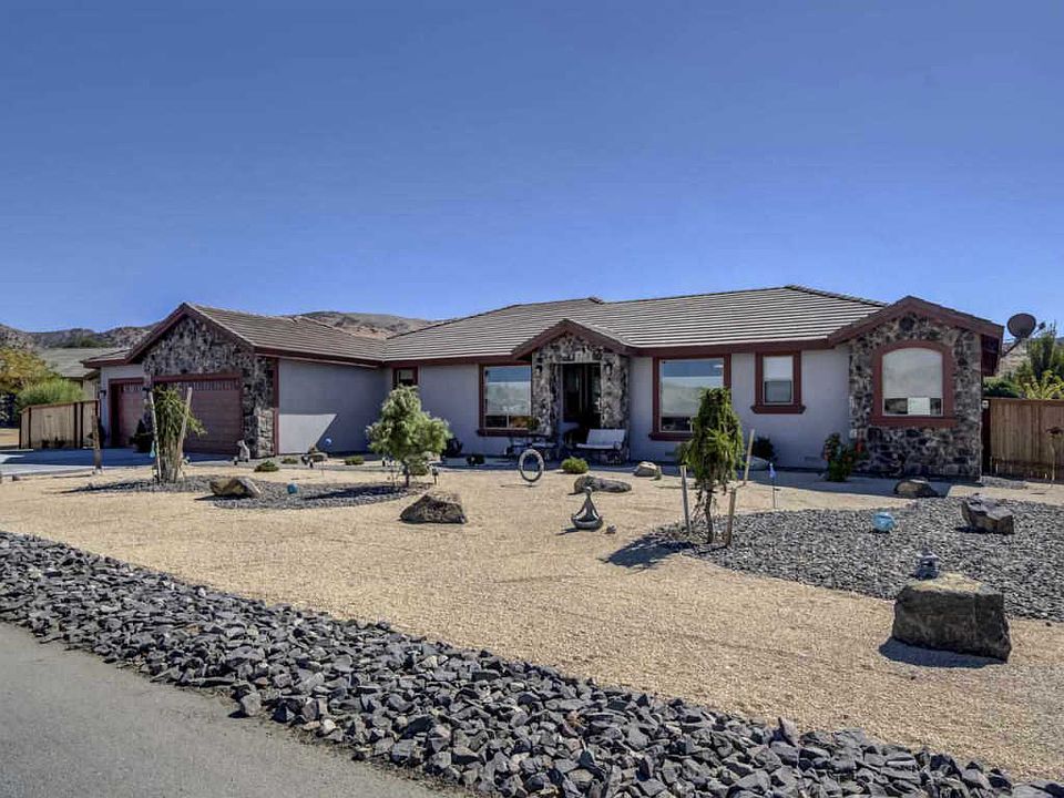 Contemporary, high end finishes, corner lot, 8 foot doors, granite counter tops with glass and stone back-splashes in Kitchen and bathrooms, built in surround sound, master bath bubble tub, kitchen aid appliances, ceiling fans, large pergola, extra large concrete and paver patio, and fully fenced professionally landscaped backyard. Quiet country living minutes to BLM and 10 minutes to major shopping, Starbucks, movie theater, casinos, etc.