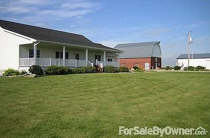 Rural living at its best in this beautifully landscaped Prairie style home with Craftsman detail built in 2003. Energy efficient with geo thermal, 2x6 construction, maintenance free steel siding, and full front porch for view of rural countryside. Great room plan with 9' walls on main floor, oak floors throughout, 4 season room for added enjoyment, 1st floor laundry/mud room, and 2 car attached garage. Full basement with 9' walls, daylight windows, partially finished. Added bonus for hobby/car buffs is 28 x 52 steel bldg., divided between garage area with 2 10' doors and heated/dust free shop & office with 3/4 bath. Nostalgic original 30 x 50 tile dairy barn with cement floor, new steel roof and siding add to this property's appeal. All this on a paved road, with quick possession possible!