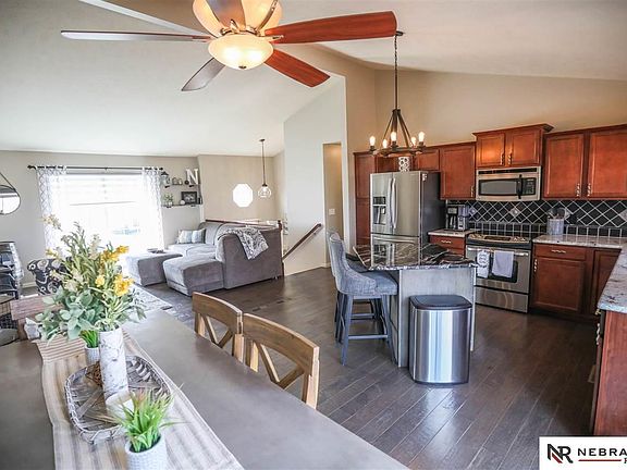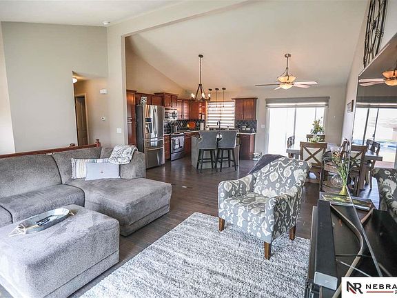 Open Sunday April 7th 1-3pm. Run...don't walk. Truly magnificent home in Quail Run Valley. Kitchen, living room and dining room are all open to each other with vaulted ceilings. Stunning kitchen has granite countertops, tile backsplash, island, stainless steel appliances and beautiful engineered hardwood floors on the main. Master has a walk-in closet and an updated ¾ bath with dual sinks. 2 other bedrooms and another updated bathroom completed the main floor. Spacious family room in basement with corner fireplace. Custom blinds throughout. Fantastic backyard has a great view of Flanagan lake. You'll love entertaining with the oversized deck, paver patio and above ground pool. There's also a fence, shed and sprinkler system. Oversized garage. Elkhorn schools. You'll love being so close to shopping, restaurants and the new 220-acre Flanagan lake where you can fish, walk and bike on the trail.