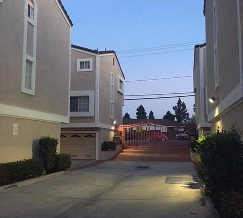 Lovely GATED Community, Interior, CORNER Unit. Very conveniently located near the 91, 710 and the 105 Freeways. Minutes to Long Beach Airport. 3 Bedrooms upstairs with High Vaulted ceilings, Upstairs and Downstairs Balconies overlooking the Green Courtyard with Gazebo and Spa. Upstairs Laundry Hook-ups in closet, Beautiful Fireplace in living room with French Doors opening up to the Balcony. Brand New Paint, Wood Flooring and Carpet throughout, New Light Fixtures and Vanities in Bathrooms. Direct access to 2-Car Garage from basement with lots of Extra Storage. This is a Very Well Maintained, QUIET and Beautiful Community. Available Immediately.