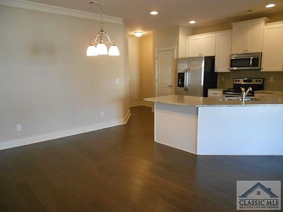 Like new 3 Bedroom, 2.5 Bath upscale townhome in Franklin Grove, a gated swim, tennis community, located in the heart of Oconee County and districted for the North Oconee High School. This low maintenance style living offers hardwood floors throughout the main level. An open plan with crown molding and a fireplace. The kitchen has painted white cabinets, granite counter tops, subway tile backsplash and stainless steel appliances. Upstairs the spacious master suite has walk-in closet, dual granite vanity with garden tub and separate shower. Coming home you pull down the alley behind and have a 2 car attached garage to park your vehicles in. Franklin Grove has a wonderfully convenient location and all the amenities plus a large clubhouse with exercise facility! Tenant occupied until mid May.