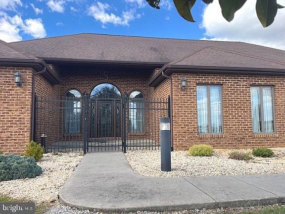 CUSTOM EXPANSIVE ALL BRICK RANCHER-NO HOA! approx 2850 sq ft above grade with Full finished basement offering appox 5200 sq ft of finished living space! Never before available this unique home offers 4 bedrooms/ 3 full baths/ 4 car garage! with extensive custom features! MAJESTIC views of the surrounding apple orchards & North Mountain! You enter the home after passing through the wrought iron gated European entry court yard to the stained hardwood door. Stepping in side you are greeting with a grand entry gallery with soaring 12' ceilings! Adjoining great room is complete with 12 ' ceiling, pallidum windows and gas fireplace, the gourmet kitchen has cherry cabinetry, Corian tops, cooktop & wall oven as well as table space for casual meals, Separate formal dining room , split bedroom layout, Master bath has a separate soaking tub & walk in shower, Full finished basement with bar, pool table, rec room , den and full bath, Outside is an over szed covered porch, extensive hardscape & a full 2 car all brick detached garage with side working shed with wood stove, and 2nd floor bonus room! This homes upgraded features include....Hardwood floors, Solid Oak trim & doors, Cherry cabinetry, Gas fireplace, Anderson Windows, all brick, attached garage & detached garage....TOO MUCH TO LIST- please schedule to tour! All this plus centrally located a few miles to 81 (either Dry Run or King St exits)