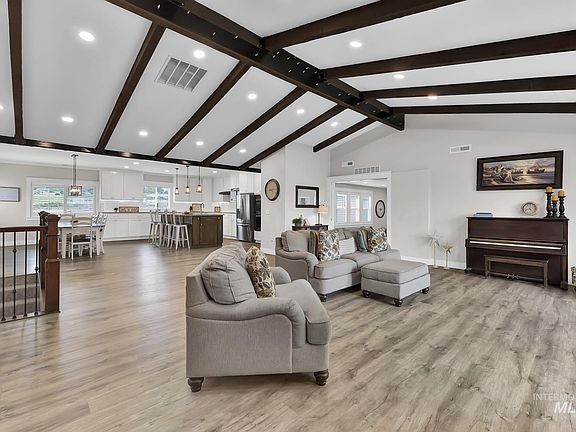 Fully renovated 5 bed, 3.5-bath home on 2.5 acres with no HOA! Enjoy vaulted ceilings, tall custom cabinets, and four spacious living areas: family room, movie room, game room, and living room. The kitchen features a convection oven/stove and its own water heater, plus two additional heaters for the rest of the home—no more cold showers. Recent updates include a sprinkler system, retaining wall, fencing, fire pit, stone steps, and curbing/rock landscaping in front and back yards. Dual driveways, walkout basement, and ample space for RVs, boats, or ATVs. Fenced pasture is ideal for horses, goats, chickens, or other animals. Large windows offer scenic views front and back. Located on a quiet road just minutes from Lake Lowell and Idaho’s wine country, this property combines country charm with modern comfort and city convenience. 6th room currently functions as a bedroom, or could be an office.