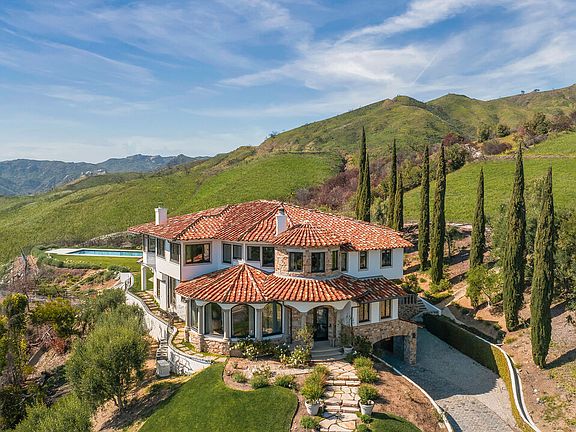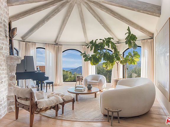 Timeless Elegance in the Enclave of Pacific Palisades! Designed by Katie Hodges, this fully remodeled 4-bedroom, 6-bathroom estate blends refined interiors with resort-style living in the exclusive gated Enclave. The thoughtfully designed layout includes an en-suite guest bedroom downstairs and a luxurious upstairs primary retreat with sweeping views, spa-like bath, plus two additional bedrooms and a large bonus room. Set on over half an acre with tastefully designed manicured grounds, the home features Venetian and European plaster, White Oak floors, Calcutta Gold kitchen countertops, Sub-Zero and Wolf appliances, Waterworks/Kallista fixtures, and custom built-ins. The outdoor oasis includes a resurfaced 50-ft lap pool with Baja shelf, updated spa, fire pit, Al Fresco kitchen including bbq, pizza oven, refrigerator with bar seating and redesigned lighting.The approx. 2,000 sq ft epoxy-coated garage fits 6 cars and includes a Tesla charger, wine cellar, gym/music room, and extra storage. Additional upgrades: Control4 system, water filtration, security cameras, integrated speakers, 4 HVAC zones with air scrubber, and designer finishes throughout. A rare and refined retreat just minutes from the beach & all that West coast living has to offer.