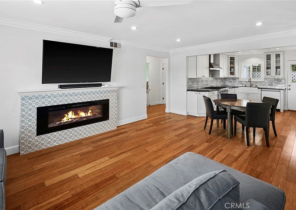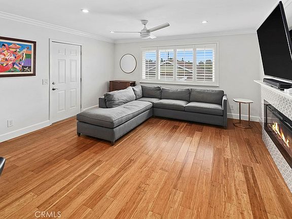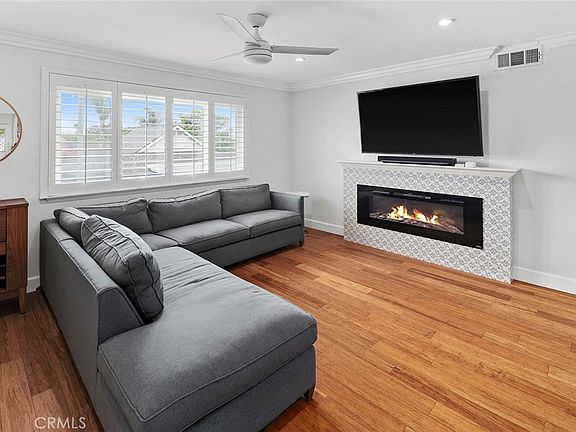 Welcome to Canyon Lane! This turnkey home features 1,330 square feet of upgraded living space and is completely move-in ready. No detail has been overlooked in this pride of ownership home located in the desirable community of Fernhill in Huntington Beach. The upstairs family room, dining area, kitchen and bedrooms all feature custom bamboo flooring. The family room has plenty of space for your furniture and a chic fireplace. The kitchen features soapstone cabinets, a new backsplash, and top of the line Viking appliances. Both bedrooms upstairs have crown moulding and the secondary bedroom has stylish wainscoting and direct access to the large balcony. The hallway bathroom has been completely remodeled and has a dual vanity and custom finishes. The 3rd bedroom (currently being used as an office) is located downstairs and can be accessed from within the home or through its own entry door. There is custom tile flooring, a remodeled bathroom and storage space along with direct access to the garage. The finished garage is large enough for two cars and features additional storage and upgraded epoxy flooring. Additional upgrades include a 220V outlet in the garage and NEST thermostat system. The community features a clubhouse, pool, and park. You're also just minutes from Meadowlark Golf Course, the beach, and great dining and shopping options. Welcome home!