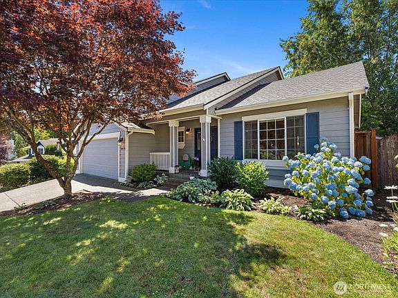 Welcome to this tastefully updated 3-bed, 2.5-bath home nestled in the desirable Monroe Foothills. Located in a peaceful, well-established neighborhood, this property offers territorial peekaboo views of Mt. Rainier and a serene lifestyle just minutes from town. Inside, you'll find spacious living areas that are warm and inviting, perfect for relaxing or entertaining. Enjoy peace of mind with recent upgrades including a newer roof, furnace, and AC system. Outside, the meticulously landscaped yard offers lush greenery, garden space, and areas to unwind or host guests. A unique bonus: the garage features a thoughtfully designed built-in office space—ideal for remote work, hobbies, or extra storage. Don’t miss your chance with this gem!