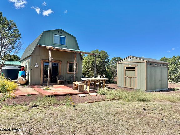 This charming 896 sq. ft. two-story home is full of character and runs on solar, propane, and plenty of love. Enjoy cozy nights by the propane fireplace and breathtaking dark skies perfect for stargazing. Daily elk visitors make this property feel magical! The 13.16 acres are flat, lightly treed, and offer amazing views. Multiple storage sheds and a laundry shed with washer, dryer, and its own water tank add convenience. With a cindered driveway and great road access, this well-loved home is move-in ready and waiting for you.