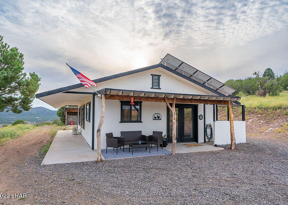 Fully self-sufficient TRUE OFF-GRID property that is STICK BUILT!!! Situated in the desirable Willow Creek Ranch just 30 miles East of Kingman sits this charmer! A 39.86 acre property that is located just seconds off highway 40 and you're at your mountaintop hideaway without hearing or seeing any traffic - convenient yet serene. Adjacent to hundreds of acres of state land, these breathtaking views are preserved for you! Self sufficiency at it's finest including but not limited to brand new solar panels, brand new Lithium Ion battery, brand new 12 KW Inverter, well and 1300 gallon storage tank, 2 brand new mini splits (AC/heat units), gardens with raised garden beds, small fruit orchard, multiple animal enclosures including 3 fully enclosed chicken coops, large aviary, large goat/sheep/general animal enclosure with house, birthing stall with house, and more. Each animal enclosure has natural terrain and perches for the animals. TONS of interior upgrades as well! (See Photos) Outside you'll find a large corrugated steel shop complete with electricity and lighting, 2 sheds, a designated shooting range area, a covered bbq area, wrap around patio & PLENTY of room to expand! (Owner/Agen