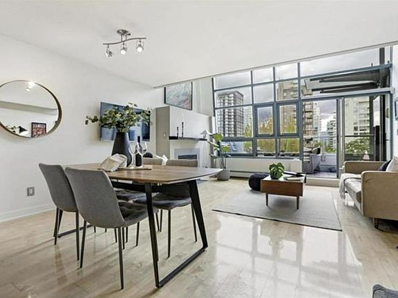 Stunning Penthouse loft at Pacific Robson Palais! This gorgeous 2 storey home offers over 1,200 sq ft of living space with 2 bedrooms and 2.5 bathrooms. This home features high ceiling windows with a Northshore mountain & Coal Harbour view, beautiful Hardwood floors, and a generous size balcony. The kitchen features granite countertops, stainless steel appliances & custom cabinet storage solutions. Great amenities include a lap pool, jacuzzi, sauna & gym. Book your private showings now