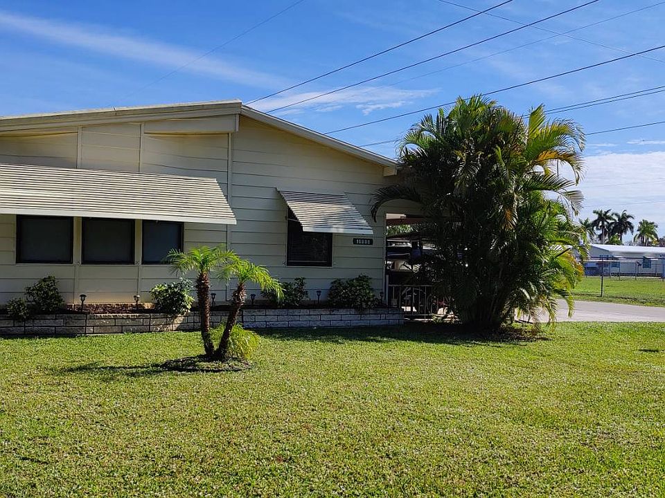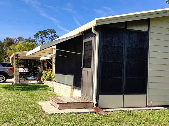 This spacious 2 bedroom and 2 full bath unit comes fully furnished and is waiting for you! It has a split floor plan for extra privacy for you and your guests and is nicely decorated. New Air Conditioning/Heating System installed in 2024. The open kitchen and bar make for easy entertaining. Bonus room (see pictures) can work as an office, lanai, or as a third bedroom. In home laundry for added convenience. Carport parking for at least 2 cars and the golf cart is negotiable. There are shutters on most windows and it is nicely landscaped. Pioneer Village has all the amenities: Swimming, Tennis, Pickleball, Cornhole, Shuffleboard, Dog Park, Bocci, Cards, Bingo and lots of planned activities. Minutes from I75, Historic Downtown Fort Myers, shopping and dining. A very friendly community! More photos coming soon! Monthly lot rent will be $794.00. Motivated seller, make your offer today!