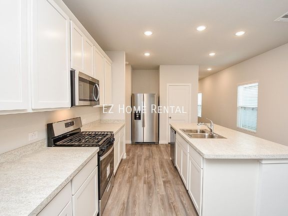 BRAND NEW HOME with all the appliances included! This one story, 3bed/2 bath energy-efficient home is available for immediate move-in! Features a well equipped kitchen that opens to the family room, a primary ensuite with large shower and dual sink vanity. Low maintenance luxury wood-look plank flooring throughout the living spaces. Fenced backyard, sprinkler system, and more. Amazing community amenities such as pool, park, splash pad, lake, and fishing pond. Conveniently located minutes from Highway 99, George Bush Intercontinental Airport, The Woodlands, Conroe, and Houston.Vinyl Plank Flooring