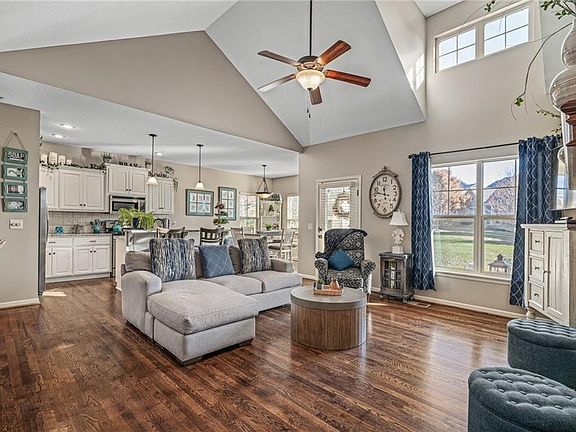 This stunning 3-bedroom, 2.5-bath Villa delivers that “ahhh” feeling from the moment you walk in. You’ll instantly notice the vaulted ceilings, gleaming hardwood floors, and the cozy gas fireplace that anchors the living room—perfect for curling up with coffee or your favorite Kansas City Chiefs game.
