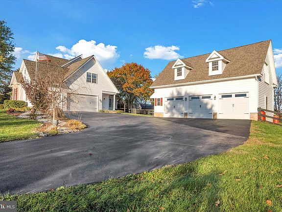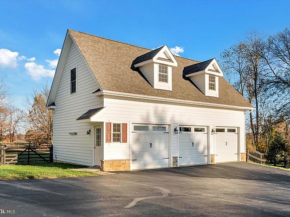 Welcome to this elegant 4-bedroom, 4.5-bath home set well back on 3 private acres in the desirable Heather Knolls community, just minutes from Leesburg, the Toll Road, and Loudoun’s wineries and shops. Featuring a charming partial stone exterior, this home offers over 5,000 sq. ft. of living space with hardwoods on the main level, upper hall, and primary suite, soaring ceilings, and abundant natural light. The main level includes formal living and dining rooms with bay windows in the dining room, a private office, and a spacious family room with gas fireplace. The chef’s kitchen boasts a 5-range cooktop, 2024 cabinetry, 2023 refrigerator & dishwasher, breakfast bar, and bay-windowed breakfast area. This level also features a sunroom with great natural light overlooking the backyard and an additional custom breakfast bar open to the kitchen area. Upstairs, the primary suite offers a sitting area, large walk-in closet, and spa-inspired bath. The home also includes a second bedroom with ensuite bath, and generous secondary bedrooms with updated 2018 overhead lighting. The walk-up lower level provides additional recreation space and storage, with room for an indoor workshop—perfect for winter projects. Please note: the floor plan shown in the photos does not include the unfinished area in the basement. Outdoors, enjoy a 2022 stamped concrete patio with large fire pit and lanai lighting, professional landscaping, and a fully fenced backyard. Car enthusiasts will love the attached 3-car side-load garage with 50-amp EV hookup plus a new 2023 detached 3-car garage (6 total) with a second-floor loft and staircase access, ideal for storage or finishing into an apartment or game room using the 100-amp sub-panel. The freshly sealed driveway leads to a welcoming front porch, the perfect place to relax and enjoy sunsets or the vibrant fall colors surrounding the large front yard. Additional highlights include dual-zone HVAC, Verizon Fios, ample closet/storage space, school bus stop at the driveway, easy access to the W&OD Trail less than 1/4 mile away, and convenient access to Colonial Highway. Recent updates: 2024 roof, 2023 HVAC, and 2018 water heater. A perfect blend of luxury, space, and country serenity.