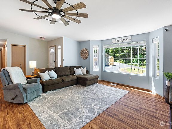 Immaculately maintained 3be 2ba home on a sprawling 1.8 ac surrounded by 100ac of DNR land! Just far enough away from the hustle and bustle, yet closer than you think being only 25 minutes to Silverdale & Seattle ferry. 5-piece en suite master bath, WIC accompanies the master, spacious bedrooms 2&3, office with built in desk, cathedral ceilings enhance the large living room where you can cozy up to the wood burning stove. Open floor plan presents a beautiful kitchen with island, walk in pantry, new flooring, quartz countertops, backsplash, and GE smart appliances with convection and air fry. Freshly painted inside and out, hardy plank siding to complete this exquisite home. Then step out onto the large deck with gazebo for the evening BBQ.