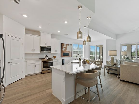 Limited Golf privileges available ($750 Transfer fee to Talis Park). Newly completed and furnished and pet-friendly coach home, featuring 3 bedrooms and a den, 2 full baths, a private elevator and a 2-car garage. Breathtaking sunset views over a wide lake. Expansive screened lanai with separate dining and sitting areas. The great room floor plan makes the condo feel like a single-family home, with large rooms, abundant windows and 10.5' tray ceilings. Wood grain tile floors throughout and 8' interior doors. The rental comes with a Social/Sports Membership, granting access to Talis Park's exceptional amenities on three acres sports complex: resort and 50' lap pools, Six Har-Tru tennis courts, tennis pro shop, pickleball, and bocce courts, a spa and fitness center, a dog park, playground basketball hoops and nature trail through the nature preserves. One of the nation's premier golf experiences on 100% Sea Dwarf Paspalum Turf, an 18-hole private golf course designed by Greg Norman and Pete Dyer with limited golf opportunities, and an on-site restaurant and bar.
