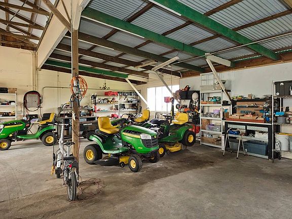 The pièce de résistance is an expansive 3-bay workshop garage; for car enthusiasts & craftsmen alike. This high-ceilinged space comes complete w/ storage & feed rooms, as well as equipment for working on cars.
