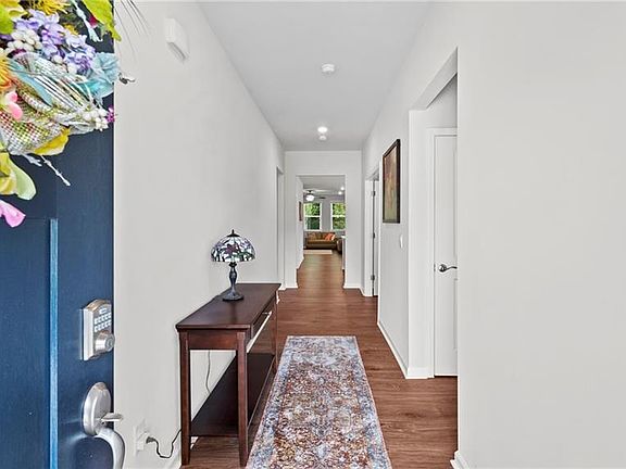 Discover effortless one-level living in this thoughtfully crafted home nestled in Quarry Hills. A welcoming floor plan with soaring 9ft ceilings leads into bright, open living spaces filled with natural light.The kitchen features 42" cabinets, quartz countertops, stainless appliances, generous storage and a walk in corner pantry. The private primary suite includes a spacious walk-in closet and a beautifully appointed bath with sleek, modern finishes. The secondary bedrooms and full bath provide comfort for guests, while the versatile flex room can adapt as an office, fitness space, or hobby room. Step outside to a screened porch and enjoy your own backyard retreat that is perfect for relaxing. Home is equipped with SMART HOME, Ring and AT&T fiber. No city taxes and home still covered under one year builder warranty. Blending style with functionality and convenience, this home at Quarry Hills is MOVE IN ready on a tree lined lot and it can be yours! Schedule your showing today!