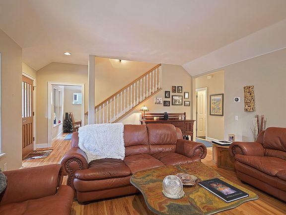 Live in your very own treehouse! Enjoy drinks on the quiet front porch, highly desirable Miller Heights neighborhood. Great walking score within walking distance to downtown Bend,Old Mill District for summer concerts. This 4 bedroom, 3.5 bath home has a newly renovated kitchen with quartz countertops, an apron-front sink, wine refrigerator, and coffee bar. Every lower cabinet in the kitchen has pull-out shelves for ease-of-access. With at least one bedroom on each floor, this home can accommodate a large multigenerational family or a long-term tenant in the daylight basement with its own entrance. Just one block from Overturf Park, there is easy access to the dog park and the trail system throughout Bend. One of the largest homes in River West, there is ample storage throughout. This home is also at the bottom of Albany Avenue hill, with easy access in snowy conditions. side garden is a regular grazing space, regularly watch wildlife such as birds and deer. Amazing home come make it your own today!