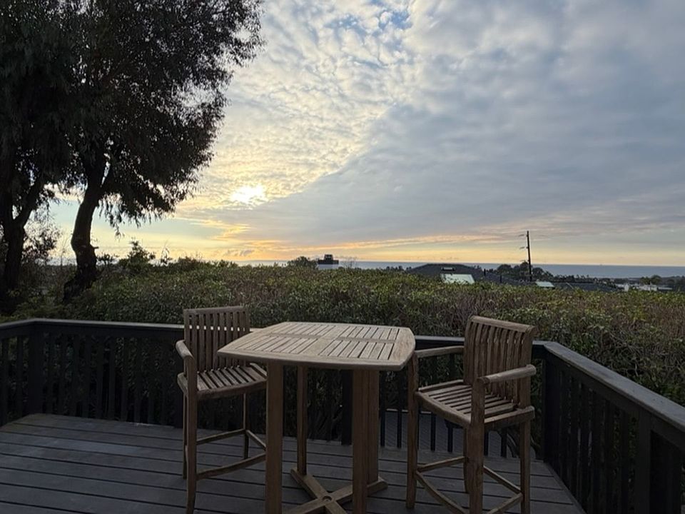 Welcome to this incredible, recently remodeled one-bedroom, one-bath home in a prime Encinitas location. Take in breathtaking ocean views from the expansive private deck, ideal for morning coffee or sunset relaxation. The beautifully updated kitchen features stainless steel appliances, a gas stove, microwave, and a large farmhouse-style sink, butcher block countertops and new cabinets with upgraded hardware. Stylish plank flooring flows throughout the living, kitchen, and dining areas, creating a bright and cohesive living space.