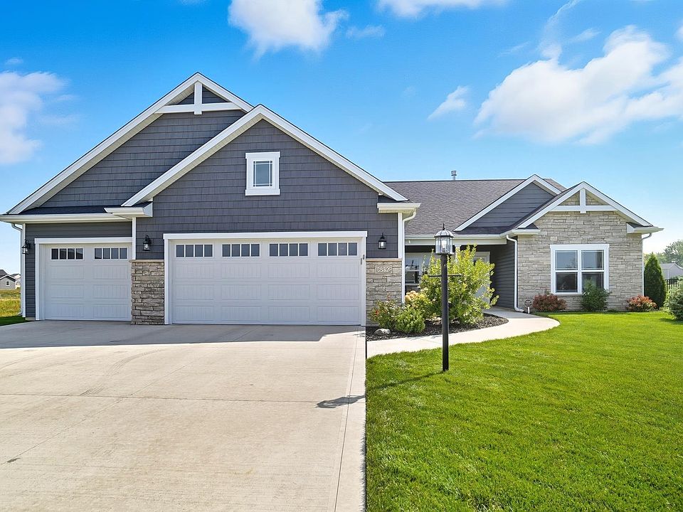 This stunning home is priced to sell now and offers immediate possession just in time for the holidays!! Enjoy the premium features of a new home, enhanced by two years of additions including custom window treatments, additional landscaping, including a baby blue spruce and arborvitaes, vault style front security door, additional insulation, a heavy duty frosted glass shower door, and of course a washer and dryer making it truly move in ready! The open, airy layout is highlighted by 9ft ceilings throughout, gas fireplace, and a spacious kitchen with quartz countertops, abundant, soft close, cabinetry, and all appliances included. The owner’s suite boasts a tray ceiling, walk-in closet, and private bath with a beautiful walk-in tiled shower. Two additional bedrooms have separate sinks and share a Jack-and-Jill bath, while a separate den with a closet provides the perfect flex space for a fourth bedroom or home office. Step outside on the oversized covered patio overlooking common area and ponds, plus gas line for grill. Schedule a showing today.