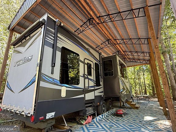 Escape to Your Own Slice of Paradise! This property offers the perfect blend of comfort and simplicity with a 2016 Keystone Fuzion RV situated on a private piece of land. Whether you're looking for a weekend getaway, a full-time tiny living option, or an investment opportunity, this setup is ready for you. The RV provides cozy living with a kitchen, two bedrooms, full bathroom, half bathroom and includes a toy hauler area. The toy hauler area allows additional 4 people to sleep or haul your 4 wheeler or side by side. Outside, the land gives you space to relax or gather around the firepit under the stars. The 20x40ft roof over is the perfect size for most any RV you may have also. Enjoy the freedom of outdoor living without sacrificing modern conveniences. Ideal for those who love camping with extra comfort, snowbirds seeking a seasonal retreat, or anyone wanting a peaceful place to unwind. Amenities include, 3 Pools, tennis courts, game room, gym, mini golf and river access.