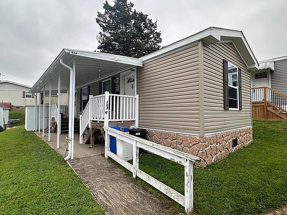 Ready to downsize and enjoy super simple, affordable living? Check out this 2-bedroom, 1-bath manufactured home in the desirable 55+ Village Green Senior Community. Step inside to the living room that flows right into the kitchen, creating an open feel that makes the space easy to enjoy. The kitchen features plenty of cabinets, counter space, and room for a small dining table. The main bedroom is tucked at one end of the home right next to the full bath, while the second bedroom sits at the opposite end, ideal for guests, an office, or extra storage. A dedicated laundry area adds everyday convenience. Low-maintenance vinyl siding with stone skirting adds great curb appeal, while the cozy interior makes this home move-in ready. Lot rent includes maintenance of common areas, snow removal, sewer, trash, and water. ***All buyers must be approved by the Village Green Community before purchasing.**