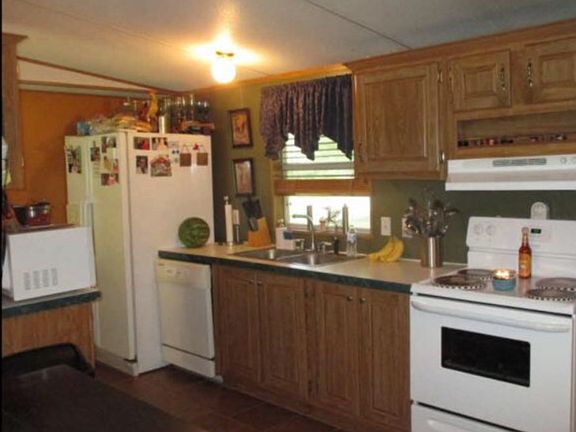 1997 16x80. 1.88 acres with stocked pond, 25x40 parking/patio,wood/tile flooring ,all appliances, 7 yr old roof and insulation, new hot water heater plus much more