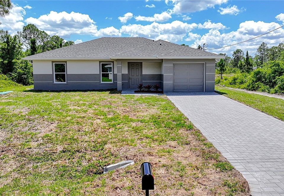 OVERSIZED LOT! You Will Be Amazed By The Quality Of This Brand New Construction 3 Bedroom/2 Bathroom/1 Car Garage Home With Eastern Exposure For Those Beautiful Florida Sunrises All On An Oversized 1/3 Acre Lot In Lehigh Acres, FL. This Home Has 1258 SF Under Air And It Is COMPLETELY Finished! You Can Move Into It Today Or Use It As A Cash Flowing Rental Unit (High Demand). The Gourmet Kitchen Comes With Quartz Countertops, STAINLESS STEEL APPLIANCES, Real Wood Shaker SOFT TOUCH Cabinet Doors & Drawers, Glass Tile Backsplash, Floor To Ceiling Pantry, And A Large Breakfast Bar. Other Upgrades Include; FREE BRAND NEW WASHER AND DRYER WITH PURCHASE OF THIS PROPERTY, HURRICANE IMPACT WINDOWS AND DOORS, Glass Back Door To Let In More LIGHT, Large Designer Porcelain Tile Flooring Throughout Entire Home, PAVER DRIVEWAY, High Ceilings, Large Living Room, Upgraded Baseboards, Large Dining Area, Custom Interior/Exterior Two-Tone Paint, Custom Ceiling Fans/Lights, Large Walk-In Closets, Quartz Countertops In The Bathrooms Along With Accent Tile Over The Tub Areas, New Landscaping Package, Eastern Exposure, Epoxy Coating In The Garage And On The Open Covered Lania, And A Laundry Area Including A New Washer And Dryer Inside The Home. This Home Is Close To Regional Shopping Malls, Golf Courses, Interstate I-75, Regional Airport, FGCU, Restaurants, Schools, Golf Courses, MLB Spring Training Baseball, Outdoor Parks, Boat Ramps, Amazing Fishing, And Those Amazing White Sand Beaches Of The Gulf Of America! Buyers Down Payment Assistance Available! The Pictures And Tour Are Of An Identical Home At A Different Location!