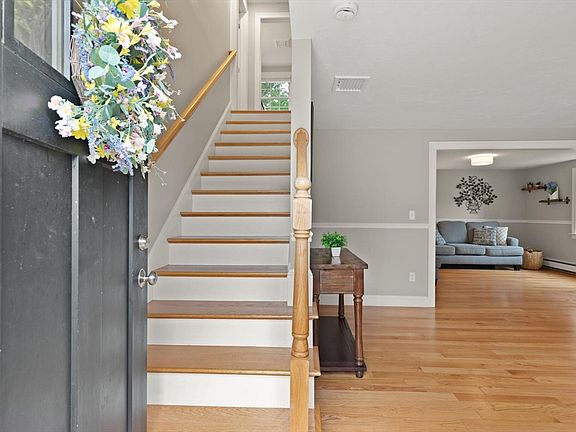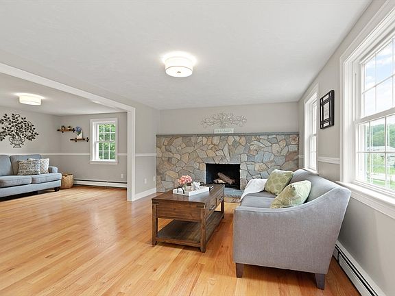 This impeccably cared for Gambrel is set in Franklin's desirable Bright Hill Estates neighborhood. The home was completely (down to the studs) remodeled in 2017 with granite counter tops, new windows throughout, new roof, new plumbing throughout, vinyl siding, new electric panel & wiring throughout, stainless steel appliances & more. Features include a beautiful oversized custom stone fireplace, hardwood flooring throughout the first floor, added cabinetry in the informal dining area which is open to the updated kitchen. A half bath with convenient first floor laundry completes the first floor. The second level boasts a good sized primary bedroom with en suite, two additional bedrooms & another full bath. Bonus space in the recently finished basement (2019). The deck overlooks a large level backyard which is perfect for entertaining. Great location with easy access to Rt. 495 & Rt. 140. Too many updates to mention here, see attached feature sheet. Nothing to do but move in and enjoy!
