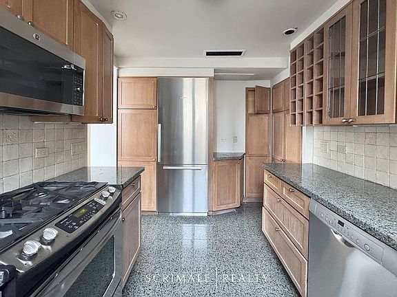 A sprawling living/dining room makes the space feel airy and open with a full wall of oversized windows facing south (and east). The large windowed kitchen has new Miele and Bosch appliances and a brand-new washer/dryer (that is vented). You will want to replace or refinish the kitchen cabinets, but you'll love the amount of storage and countertop space.