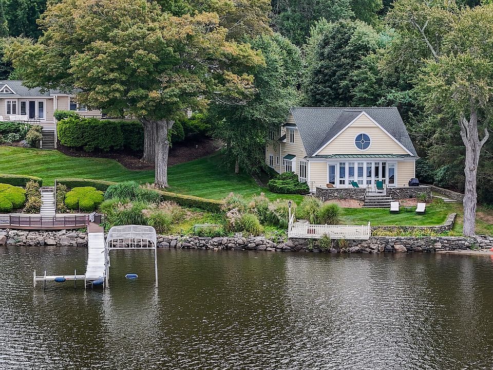 Lakefront estate consisting of 2 separately deeded properties set on 2.32 acres of rolling waterfront on Bantam Lake. 5 buildings total including 2 main houses, detached 2 car garage, stand alone office/den, and 2 story recreation building. Waterfront with stunning views, dock and lift, waterside deck, gazebo, and walk-in beach. 2166sqft lower house completely remodeled and with Anderson casement windows, inset custom cabinetry, and hardwood floors throughout. Eat-in-kitchen with custom inset cabinets, Quartz countertops, stainless appliances, breakfast bar island, and backsplash. 2 story great room with fireplace and built-ins. Main level master suite with attached full bath. Additional full bath / laundry room. Office/Den. Upstairs 3 additional rooms plus full bath. Gorgeous bluestone patio with water views. 3258sqft upper house with main level master suite addition including bedroom, full bath, kitchenette, and 2 story family room with fireplace and views! Eat-in-kitchen with stainless appliances, vaulted ceiling, beams, and skylights. Cozy living room with fieldstone fireplace and slider to deck. Additional main level bedroom suite with attached bath. Upstairs 3 additional rooms plus full bath. Finished basement with walk-out. Main level trex deck with outdoor grill and sink. Rec room outbuilding with wetbar, fireplace, coffered ceilings and wood paneling. 1/2 bath and upstairs fully finished loft playroom. Outdoor shower. Additional outbuilding finished single room. Detached 2 car garage. Central air, sec sys, irrigation, landscape uplighting, plenty of parking along circular drive with 2 entrances to the road. Gorgeous meandering lot with lakefront and views. Bucolic setting with professional landscaping and plantings throughout the lot and tastefully incorporated into the topography with stone walls, patios, and walkways. Thoughtfully planted trees and shrubbery protect privacy while creating a home away from home atmosphere. Many possibilities for this property. Was used as a large summer family property for decades. Oil tanks in basement. Propane tank buried. Town card has total of 6 bedrooms and 5 bathrooms. Property has many extra rooms for sleeping and 7.1 bathrooms. Attached floor plans are preliminary and will have room names modified shortly. Please ignore room names. Year built varies between all buildings. See town card for details. 169 E Shore Rd & 171 E Shore Rd are being sold separately as mls # 24129415 & # 24129401
