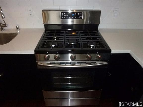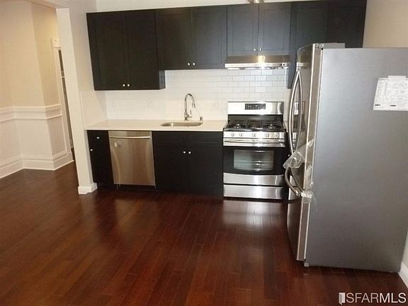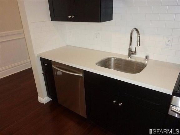 Fresh and Clean Mission/Noe Valley 1-2 bedroom 2 bath street level garden apartment. Hardwood Floors throughout, remodeled kitchen, newer baths. Common space is the front room with kitchen and living space. Kitchen has stainless dishwasher and side by side bottom drawer refrigerator, chocolate cabinets, quartz counters, subway tile backsplash, gas range with hood. Rear master suite with full bath and closet. The smaller 2nd bedroom has no closet. Master and hall baths beautifully finished with natural stone tile.
