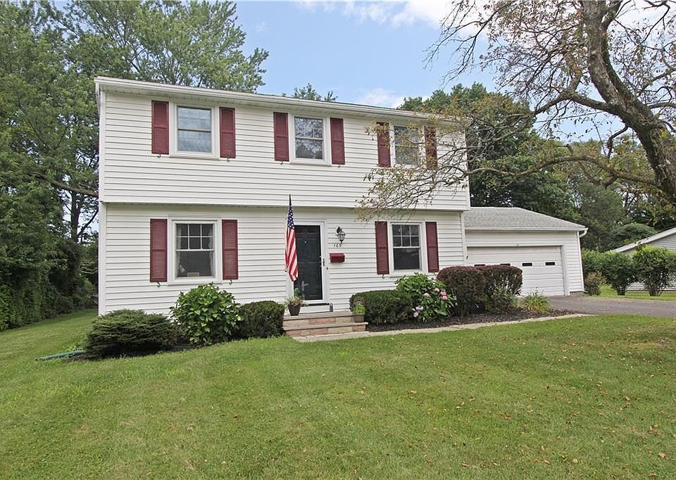Welcome Home to this beautiful colonial in Penfield! Inside spacious kitchen, refaced cabinets(2013), hardware(2013), back splash(2013), all appliances(2015), new kitchen floor(2013). Large dining and family room, additional finished space in basement not included in sqft. Entire New full bath; shower, floor, tile, hardware, counter(2015). All new interior doors and re-screened back porch overlooks park like backyard! New driveway(2019). Quiet street, walking distance to the Penfield schools.