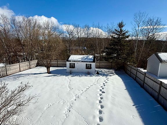 This charming colonial home, set on over a quarter-acre, combines comfort and style in a prime, convenient location. The upgraded kitchen, featuring sleek appliances and an adjacent dining area, is perfect for cooking and entertaining. The spacious living room is highlighted by a cozy real wood-burning fireplace, adding warmth and character. Upstairs, the master bedroom boasts elegant coffered ceilings, and throughout the home, crown molding and wainscoting cand be found adding a touch of sophistication. The garage features new epoxy flooring. With 3 bedrooms, 1.5 baths, new roof and central heating & cooling, this home has everything you need. Enjoy the oversized back deck, large backyard, and a spacious shed for additional storage. Conveniently located near schools, parks, shopping, and major highways. Showings start during open house Saturday March 8th 10:30am-12:30 pm