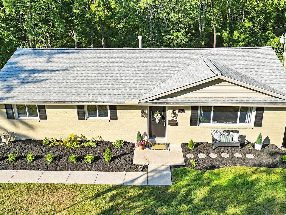 Welcome to your own paradise in the heart of Delaware. This brick ranch is nestled on over 2 acres of picturesque land, with two charming brooks and abundant wildlife. Step inside and discover a bright and inviting living room with oversized windows letting natural light illuminate the space. The kitchen boasts a stylish two-tone design, with multiple modern SS appliances. The cozy dining room is paired with French Doors leading to the wooden deck, perfect for enjoying a morning coffee overlooking the treetops. The home offers three bedrooms on the main level, including the primary suite. Downstairs, you'll find a basement overflowing with potential. A blank canvas awaiting whatever you can dream; maybe a family room, home office, or game room? The basement has a bedroom, half bath, and laundry (washer/dryer included). Once an attached garage, has now been lovingly converted into a workshop with built in benches, shelving, and tools that will stay with the home. This home combines the charm and natural beauty with functional living space, you don't want to miss it!