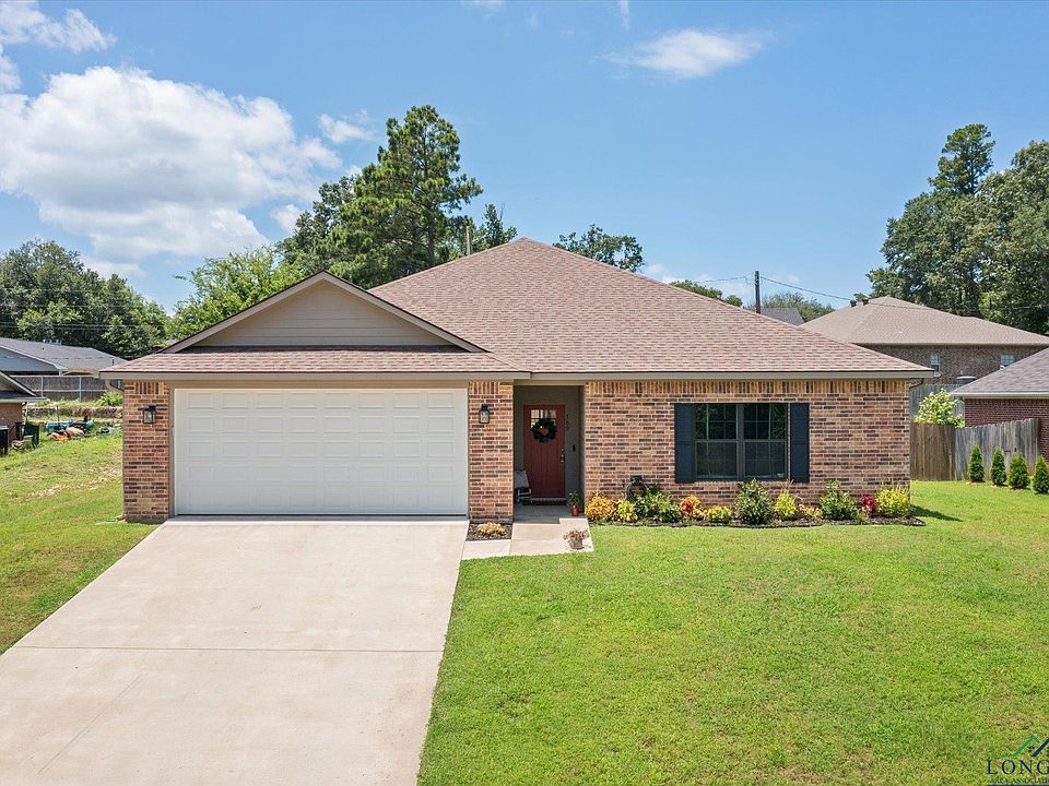 Welcome to this beautiful 3-bedroom, 2-bathroom home, ideally located within walking distance to Gilmer High School. Built in 2022, this 1,888 sq ft residence offers the perfect blend of modern comfort and convenience. Step inside to discover an inviting open living space filled with abundant natural light, making it perfect for relaxing or entertaining guests. The spacious kitchen features ample cabinetry, a generous pantry, and plenty of counter space for all your culinary adventures. Retreat to the serene master suite, complete with a well-appointed bathroom and plenty of closet space. Two additional bedrooms and a second full bath provide flexibility for family, guests, or a home office. Enjoy outdoor living in the fenced backyard, featuring a covered patio—ideal for morning coffee or evening gatherings. The two-car garage offers ample storage and parking. Don’t miss your chance to own this move-in ready home in a prime Gilmer location. Schedule your tour today!