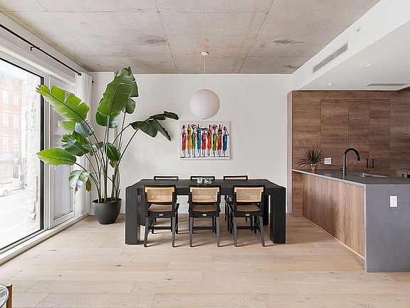 Apartment 2B is a full floor, spacious, corner two bedroom + two bathroom home featuring floor-to-ceiling windows and European white oak, wide-plank, wood flooring throughout. The elevator opens to your own private hallway that can be used for coats, shoes and strollers. The exposed concrete ceilings adds a touch of industrial style.