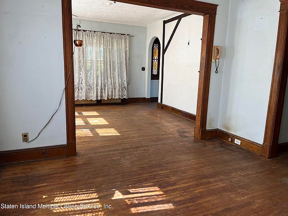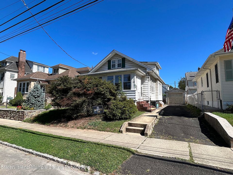 Cozy Cape in Westerleigh. This home needs some TLC but is sitting on a nice sized lot in the heart of Westerleigh. Nothing at this price in the area. LR, DR, K, 2BR's and a Full bath on first floor. Hardwood floors throughout. Rear stairwell to heated second floor with 2 additional small bedrooms. Large unfinished basement with high ceilings and rear entry. There is room to grow in this house. Nice size backyard with a private driveway and detached rear garage. Close to shopping and Public transportation.