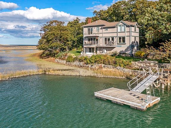 Discover unparalleled waterfront living in this captivating home nestled in the desirable Damon’s Point area of Marshfield Hills. With breathtaking 180-degree views of the marsh and river, this tranquil sanctuary offers a direct waterfront setting, inviting you to launch your boat from your private dock into the North River. Immerse yourself in spectacular wildlife and endless recreation that surrounds you or relax and unwind in the serenity of your intimate backyard. Inside, enjoy an open floor plan where the center-island designer kitchen, dining room and fireplaced living room with access to the back deck capitalize on the scenic views. For private moments, there is an office/den on the 1st floor. The lower level family room with gas fireplace offers plenty of storage space and opens to the stone patio for ease of entertaining inside and out. Upstairs, 3 bedrooms including the master bedroom with walk-in closet and guestroom with exterior balcony all have picturesque views.