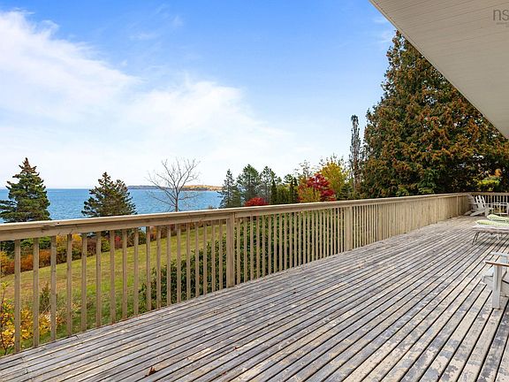 A spectacular elevated home with a 66-foot-long east facing deck overlooking the treasured Mahone Bay Islands and open ocean. The long white sandy Westhavers beach is less than a ¼ km walk, down the shore. The ocean playground is at your feet. A private oasis with over 200 feet of direct ocean frontage on 3.5 acres of land, and all of it has been fenced in with 8 ft. high locked access gates to stop the deer from feasting on the immaculate gardens. Built in 1970, this mid-century modern designed home has 2657 square feet of living area plus a built-in garage and lower-level workroom/storage areas. This ultimate layout comprises a main residence with two bedrooms and 1.5 bathrooms and an additional separate two bedroom with a full bathroom suite. An ideal spot to launch a Laser sailboat, the beach has calm warm waters for swimming in the summer, and more adventurous kayak destinations for island picnics. Cited on a mini drumlin the property is protected from the elements with a sea wall of rock boulders. Landscaped lush green lands have been thoughtfully prepared with precision with a variety of trees and shrubs. The sound of waves and the smell of sea salt is a calming reminder of the Nova Scotia experience. The interior design focuses on the ocean view with high ceilings and plenty of glass; synonymous with many contemporary structures you would find today. Features include many built in cabinets & shelving, a wood burning fireplace, and oak hardwood flooring. Convenience was top of mind with three interior entrances from the garage to the main foyer, the kitchen, or the secondary suite. The primary suite, living room and the den all showcase the coastal ocean setting and canopy of lush hedges and green lawns. A lower level has two walkouts with a massive recreation space, a spot for a gym, and plenty of storage space. Maders Cove is a rare oceanfront enclave community around the corner from the shops and restaurants of Mahone Bay.