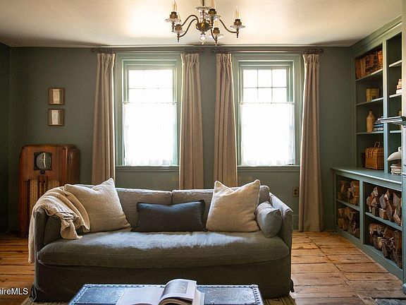 As one of the oldest houses on record in the village of Philmont, this stunning c1815 eyebrow Colonial sits on a beautiful acre of land. Greek keys, a unique architectural detail, frame the eyebrow windows on the second floor. Inside, the house has been beautifully restored. The original wideboard plank floors, twelve-over-six windows, and three fireplaces all remain in tact. The two public rooms at the front of the home are mirror images, each centered around a fireplace. Upstairs there are two wings. The back wing is the primary bedroom, large and private with a beautiful ensuite bath. At the front of the house there are two guest bedrooms and a generous landing, currently used as a playroom. The house is a quintessential, historic Hudson Valley home just 15m Hudson and 2.5h to NYC.
