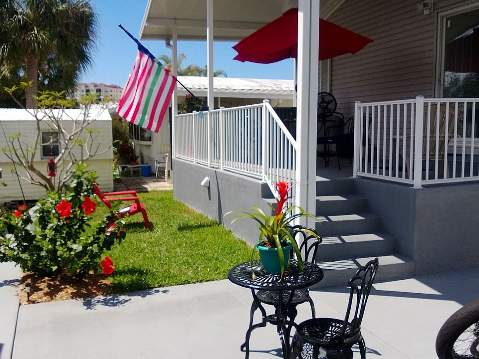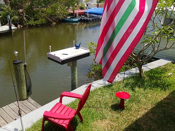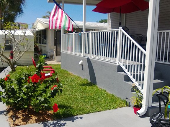 Buy your BOAT a home! Like new! This Palm Harbor model is completely upgraded. 3BR/2BA home on Hatchett Creek is move-in ready. You'll love the cathedral ceilings, light, bright & neutral decor, nice tile in kitchen, 1 bedroom & baths,Berber in living & 2 bedrooms. New A/C 2008 and 3 solar tubes, 2 storage units under home with concrete slab plus a super storage shed at the end of the tandem carport. Seawall, dock and 10,000# lift for the boating enthusiasts. Florida living at it's best, you will enjoy sitting on your concrete back porch overlooking the creek, fishing from your dock & being just a minute to the intra coastal. Beautifully landscaped this is one of the largest lots in the park. Association says this is a 55+ community - no pets. $330 per quarter covers your lawn, water & sewer. What a winner! OWNER MAY FINANCE