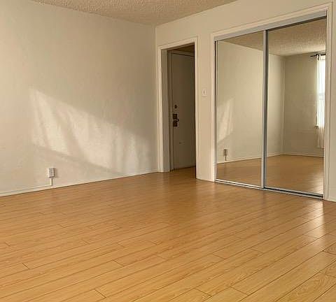 Sunny 1 Bedroom, 1 Bath Apartment in Beverly Hills. Upper SW Corner unit with large living room and updated kitchen featuring a gas range, refrigerator and microwave. There is a cozy breakfast nook for morning coffees and a wonderful vanity area adjacent to the bathroom which includes dresser drawers and mirrored mantel. Enjoy the sanctuary of a spacious bedroom with deep closet. Unit also includes A/C, wood-like and tile flooring throughout. Building has intercom entry and shared laundry. Permit parking is available on the street. Great location close to Cedars-Sinai Medical Center, Four Seasons Hotel Doheny, Melrose Arts District and world famous Rodeo Drive. No pets please. Available now. Non-smoking building and unit. Minimum one year lease term. Tenant pays for utilities.