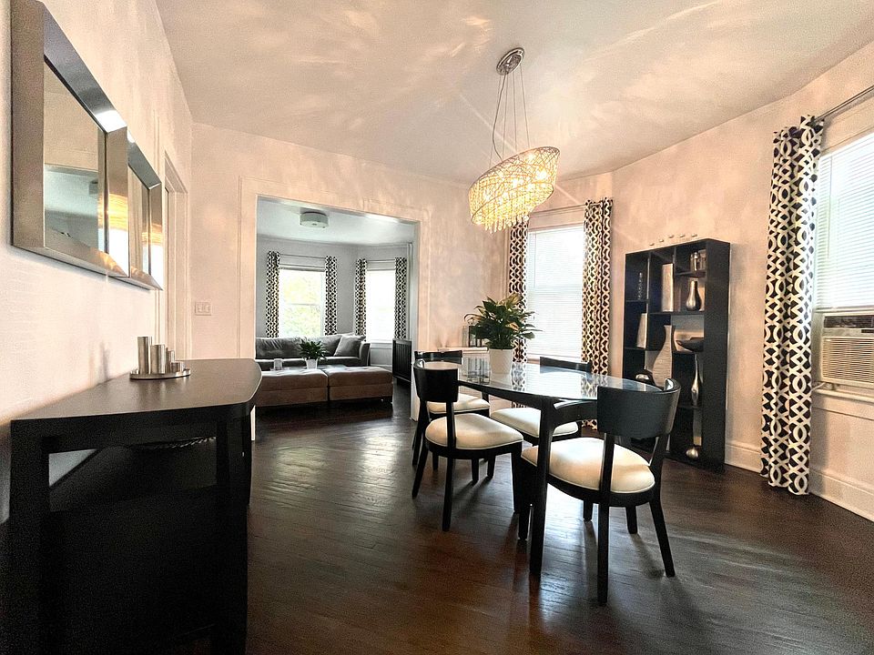 Come take a look at this Bright and Renovated 1st unit apartment located in Upper Irvington bordering Maplewood! Features you'll love: HIGH Ceilings, gleaming hardwood floors, new windows, and a newly renovated bathroom and kitchen. The kitchen offers high-end stainless steel appliances, ample cabinet space, ceramic tiles, and granite countertops. Apt is VERY SPACIOUS offering a living room, a dining room, an eat-in kitchen, and 2 bedrooms. The owner is offering to leave the apartment furnished (Furnished by an interior designer) Ideal for commuters 13 miles from Holland Tunnel, 30 min direct train to NYC. Conveniently LOCATED near restaurants, bars, and major highways (GSP, I-78, Rt22), and to the Beth Isreal Hospital. Wi-fi included Laundry hook-up, additional storage space in the basement, and on-street parking. Wi-fi included Laundry hook-up, additional storage space in the basement, and on-street parking. No Smoking. No Pets. Landlord Pays Half of Water. Tenant Pays Gas and Electric. Tenant pays 1-month brokerage fee, 1.5-month security deposit, and 1 month advance, must have 720+ credit score.
