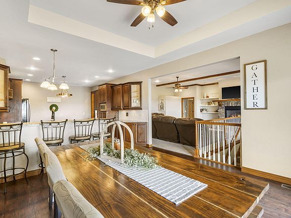 This spacious 3 bed, 3.5 bath home with two living areas and a walkout basement offers incredible value and charm in one of the area's most desirable communities.Step inside to find a living room with a stunning stone fireplace and custom built-ins, a chef's kitchen with cabinet and counter space galore, plus a butler's pantry. The master suite is a retreat of its own, featuring trayed ceilings, a massive 10x11 walk-in closet, double vanities, and a luxurious shower with dual showerheads. A second ensuite bedroom on the main level and a flexible office/formal dining room make this layout ideal for any lifestyle.The walkout lower level is perfect for entertaining, with a second living area, full bath, John Deere room/workshop, and even a walk-through crawl space for easy storage and access. Upstairs, a bonus loft above the oversized 29x23 three-car garage provides endless possibilities--game room, hobby space, or extra storage.Enjoy breathtaking views from the covered deck, or gather around the newly built patio and firepit with ambient lighting. Other features include: central vacuum system, granite countertops, water softener, mudroom with sink, circle drive, and plenty of parking.All of this sits on a 1-acre lot in Saddlebrooke, offering resort-style amenities: pool, tennis courts, playgrounds, creeks, hiking trails, and community spaces for events. Plus, you're minutes from Hwy 65 for quick access to Branson, Springfield, or outdoor adventures in Mark Twain National Forest and Busiek State Park.A home that truly has it all! Space, comfort, updates, and community. Don't miss this one!